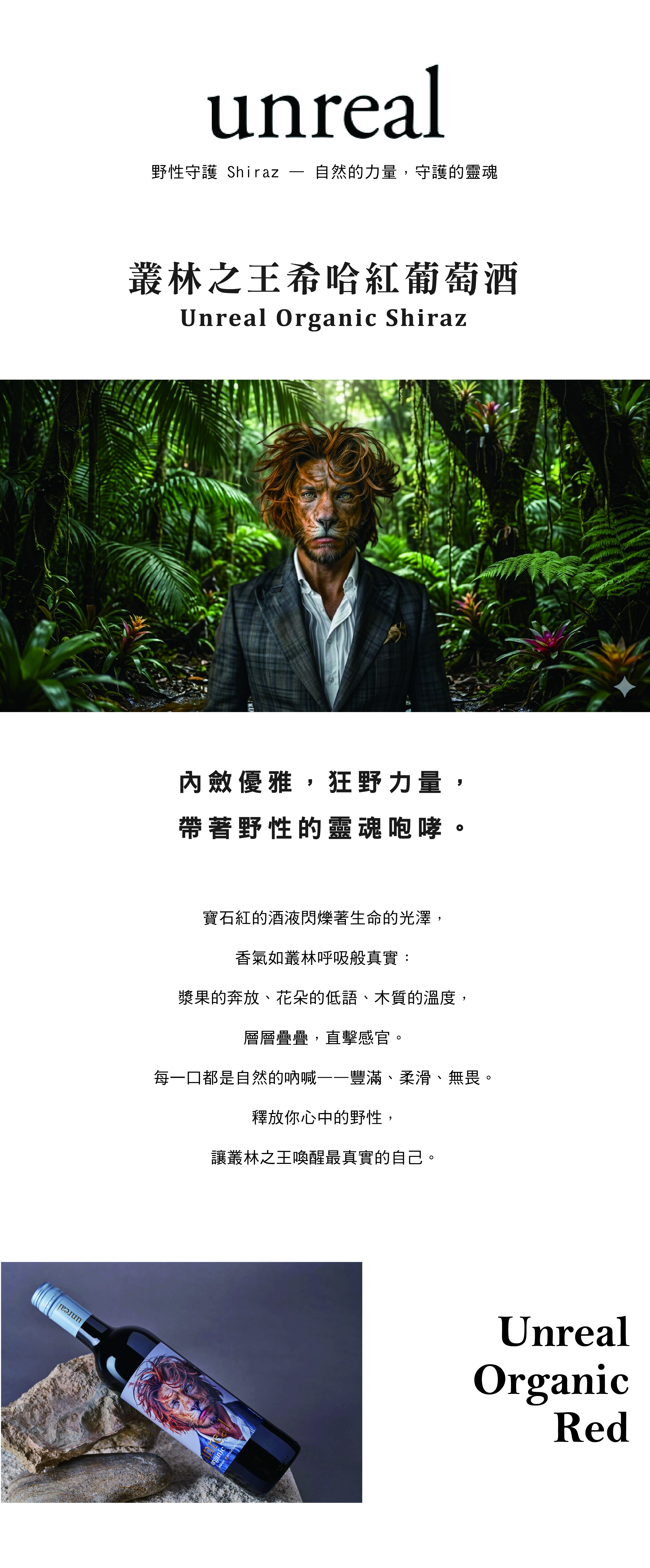 來自西班牙的叢林之王希哈紅葡萄酒,完美展現了「優雅是一種力量」的品牌精神 。酒液呈現深紅寶石色並閃爍紫色光澤,香氣深邃,融合了野果、紫羅蘭、香草與烘烤木質的層次 。